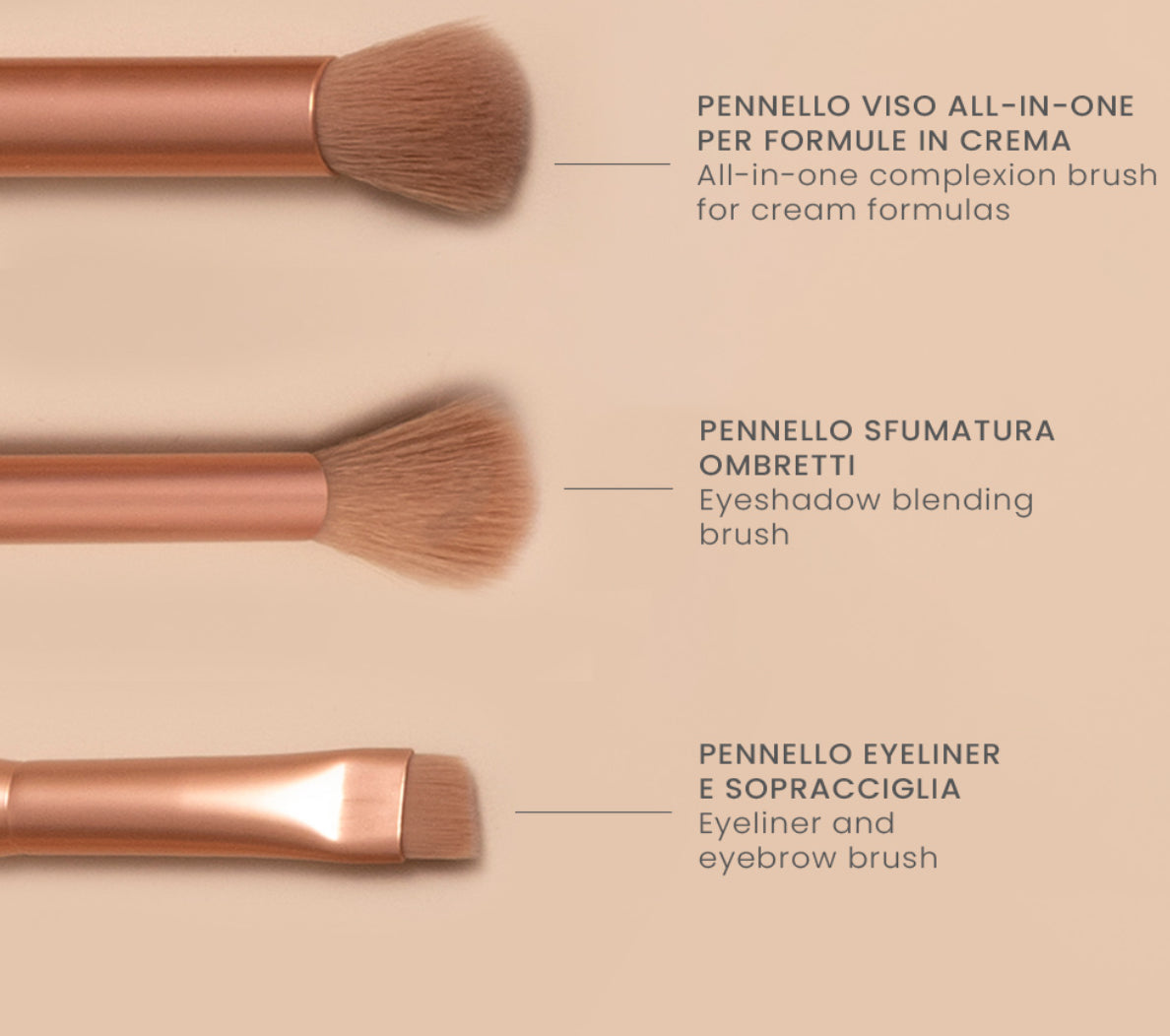 Completo e versatile, questo kit composto da 6 pennelli viso e occhi include tutti gli strumenti essenziali per applicare e sfumare facilmente i prodotti viso e occhi in polvere e in crema valorizzando ogni tratto con una sola passata. Ideale per ottenere un risultato professionale anche a casa. Questo kit pennelli contiene: