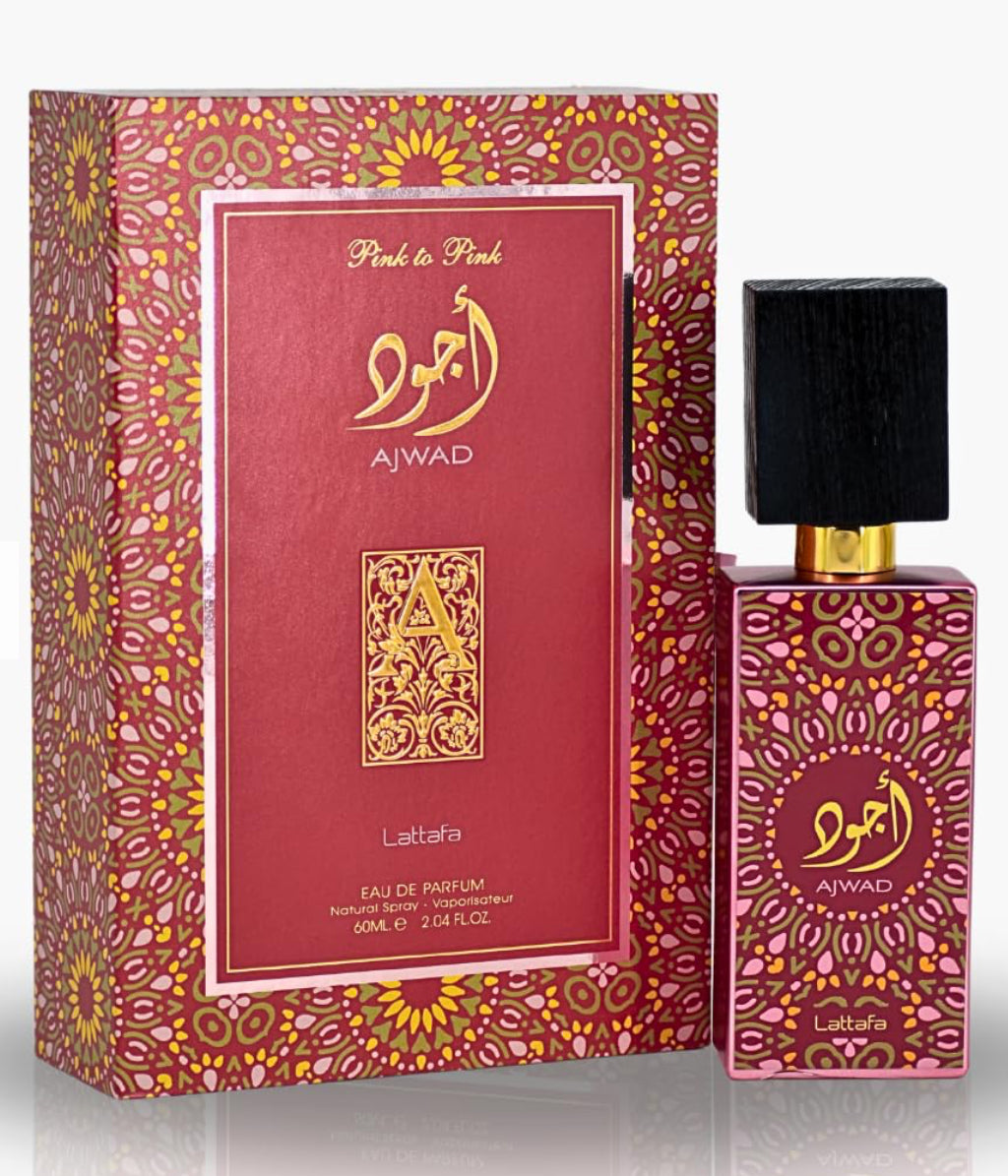 Ajwad Pink to Pink di Lattafa Perfumes è una fragranza del gruppo unisex. È una nuova fragranza. Ajwad Pink to Pink è stato lanciato sul mercato nel 2024. Le note di testa sono Guava, Pompelmo Rosa, Litchi e Pepe Rosa; le note di cuore sono Rosa, Peonia e Magnolia; le note di base sono Cuoio, Muschio, Vaniglia, Ambra Grigia e Muschio Vegetale.