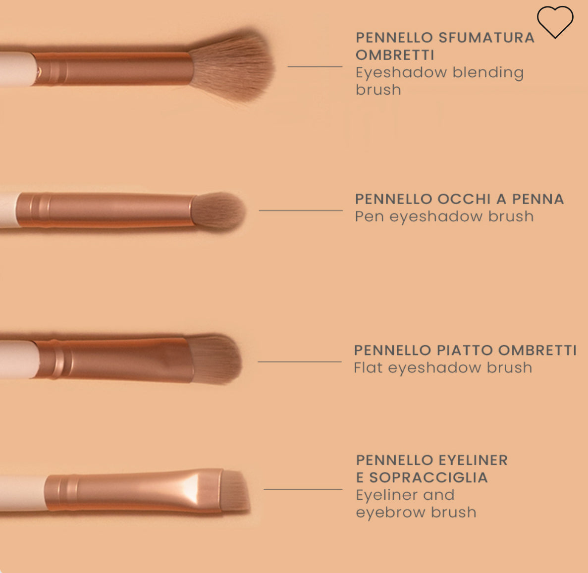Like a Pro è il set di pennelli ideale per chi desidera ottenere un risultato professionale anche a casa. Composto da 8 pennelli per il viso e gli occhi, questo kit ti accompagna in ogni fase del make-up: dal fondotinta alla matita, passando per il correttore, ombretto e blush. Ogni pennello è realizzato con un manico in legno elegante e resistente, e setole sintetiche ultra morbide, perfette per stendere facilmente formule liquide, in crema o in polvere, garantendo un’applicazione precisa, uniforme e confortevole.