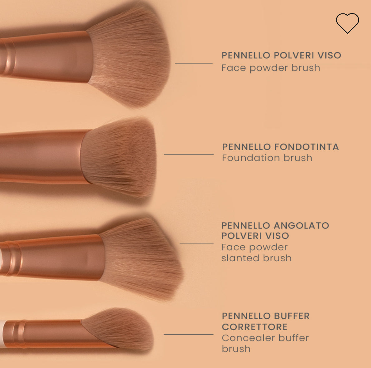 Il tutto è contenuto in una pratica beauty bag, compatta e funzionale, perfetta per portare i tuoi pennelli sempre con te, anche in viaggio.