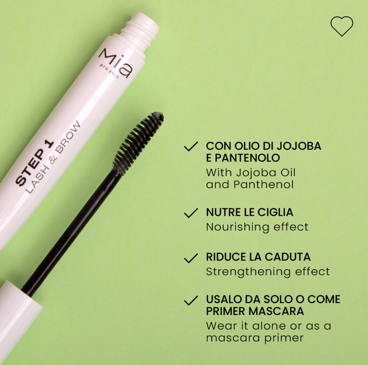 Step 1 Lash & Brow è il trattamento rinforzante per ciglia e sopracciglia. Protegge, nutre e rinforza le ciglia deboli e le sopracciglia diradate, intervenendo sui danni causati dall’uso eccessivo di mascara, piegaciglia e struccanti aggressivi. La formula di Step 1 Lash & Brow, arricchita con Pantenolo e Vitamine, ha un'azione idratante, ristrutturante e protettiva; idelae come base mascara per sublimare l'effetto volume e lunghezza del mascara nero e proteggere le ciglia dalle aggressioni esterne. La texture cremosa e filmogena del trattamento, riveste le ciglia con un film sottile e protettivo che prepara all’applicazione del mascara, senza appesantire. Oftalmologicamente testato